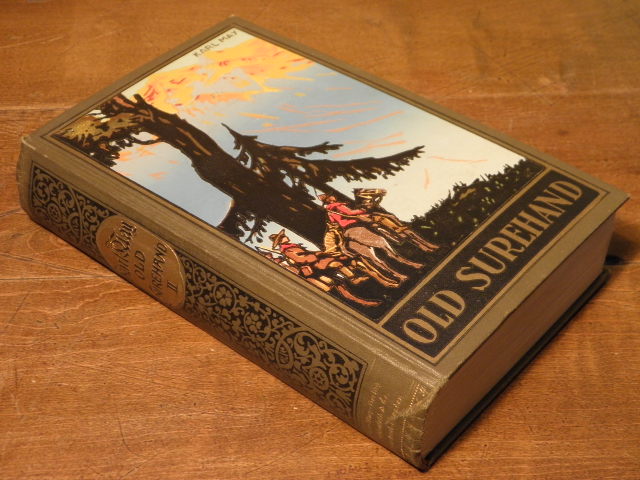 MAY, Karl: Old Surehand. 2. Band. Reiseerzählung. 197.– 220. Tsd. Radebeul (Karl May), (1936). 584 S. farb. ill. OLn. NaV, Rücken leicht gewellt, schönes Ex. = Gesammelte Werke, Bd. 15.