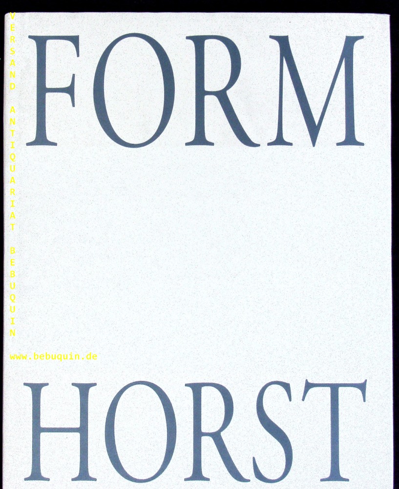HORST: Form. Altadena (Twin Palms), 1992. Fol. 79 Bl. mit 75 Bildtafeln. OLn mit OUmschl. sehr schönes Ex. EA. Horst P. Horst (* 14. August 1906 in Weißenfels als Horst Paul Albert Bohrmann; † 19. November 1999 in Palm Beach Gardens, Florida, USA) war ein amerikanischer Fotograf deutscher Herkunft. Er wurde durch seine Fotos für die Modezeitschrift Vogue und für seine Porträts berühmter Zeitgenossen bekannt. Er wird zu den bedeutenden Modefotografen des 20. Jahrhunderts gezählt.