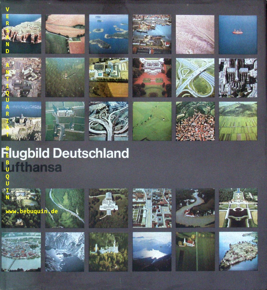 DEUTSCHLAND.– SASS, Rudolf: Flugbild Deutschland. Hrsg. von der Lufthansa. Gütersloh (Mohn), 1968. 29 x 28 cm. 167 S. mit zumeist farb. Bildtafeln von Otl Aicher. OLn mit OUmschl. kaum berieben, schönes Ex. seltene EA mit Luftaufnahmen aus den Jahren 1963 – 1967, die mit einer Hasselblad auf Kodak Ektachrome aufgenommen wurden.