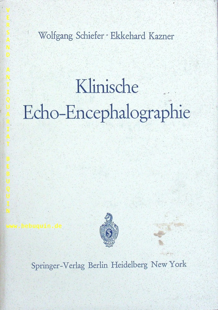 MEDIZIN.– SCHIEFER, Wolfgang + KAZNER, Ekkehard: Klinische Echo-Encephalographie. Mit einer Einführung von Werner Güttner. Berlin (Springer), 1967. 4°. VII, 202 S. mit 174 Abb. in 280 Einzeldarstellungen. OLn mit OUmschl. Umschlag etwas angeschmutzt, sonst gut. EA.