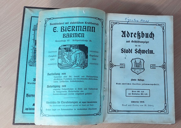 ADRESSBUCH UND GESCHÄFTSANZEIGER FÜR DIE STADT SCHWELM 1910.-