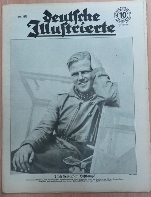 2. WELTKRIEG.– ZIMMERMANN, Richard: (Redaktion) Deutsche Illustrierte. 16. Jahrgang. 49 (von 52) Heften. Berlin (Erich Zander), 1940. 37 x 28 cm. über 1000 S. mit zahlr. zumeist fotografischen Bildern. ill. OBr. Kanten teils bestoßen und gebräunt, vereinzelte Einrisse, es fehlen die Hefte 1, 3 und 25. Eindrucksvolles Dokument für Nationalsozialismus und 2. Weltkrieg. „Deutsche Illustrierte“ ist der Name einer Zeitschrift, die von 1928 bis 1944 in Deutschland erschienen ist. Es handelte sich um ein Magazin mit einem breiten Themenspektrum, das sowohl aktuelle politische und gesellschaftliche Ereignisse als auch kulturelle Inhalte und Unterhaltung umfasste. Die Zeitschrift war bekannt für ihre hochwertigen Illustrationen und Fotografien. (Wikipedia)