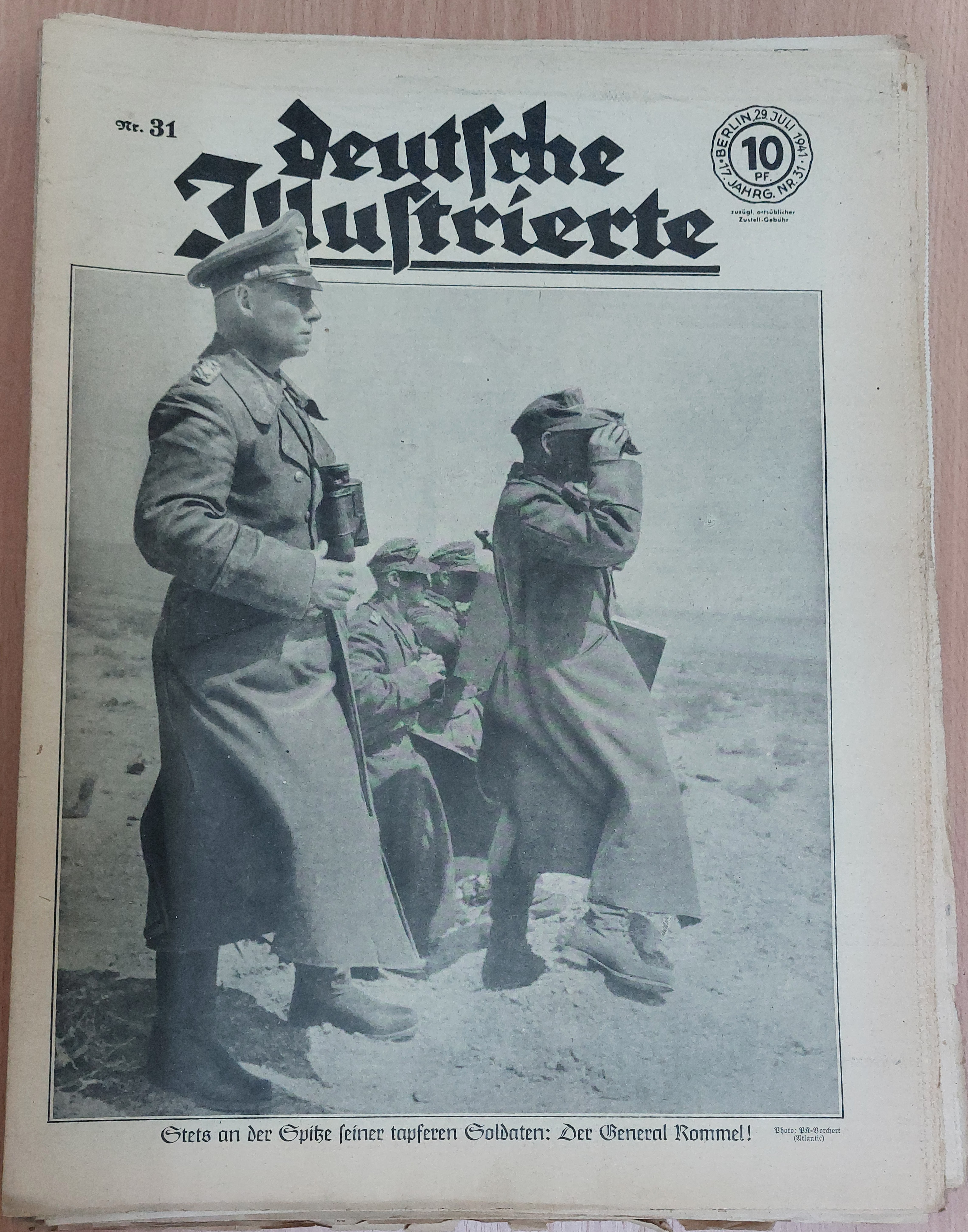 2. WELTKRIEG.– ZIMMERMANN, Richard: (Redaktion) Deutsche Illustrierte. 17. Jahrgang. 52 (von 53) Heften. Berlin (Erich Zander), 1941. 37 x 28 cm. über 1000 S. mit zahlr. zumeist fotografischen Bildern. ill. OBr. Kanten teils bestoßen, schattenrandig und gebräunt, vereinzelte Einrisse, es fehlt das Heft Nr. 1. Eindrucksvolles Dokument für Nationalsozialismus und 2. Weltkrieg. „Deutsche Illustrierte“ ist der Name einer Zeitschrift, die von 1928 bis 1944 in Deutschland erschienen ist. Es handelte sich um ein Magazin mit einem breiten Themenspektrum, das sowohl aktuelle politische und gesellschaftliche Ereignisse als auch kulturelle Inhalte und Unterhaltung umfasste. Die Zeitschrift war bekannt für ihre hochwertigen Illustrationen und Fotografien. (Wikipedia)