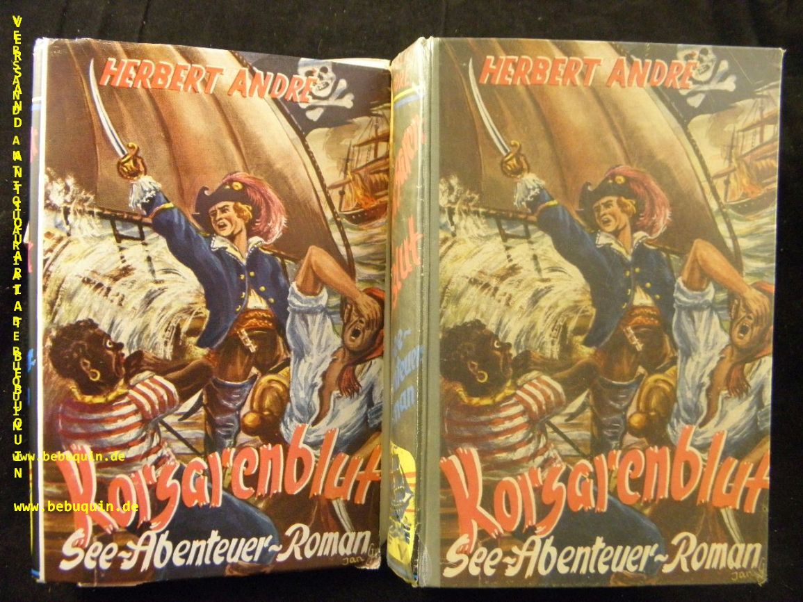 ANDRE, Herbert: Korsarenblut. Seeabenteuer-Roman. Marl-Hüls (Feldmann), 1953. 270 S. farb. ill. OHLn mit OUmschl. fliegender Vorsatz fehlt. 1. Aufl. dieser Ausgabe.