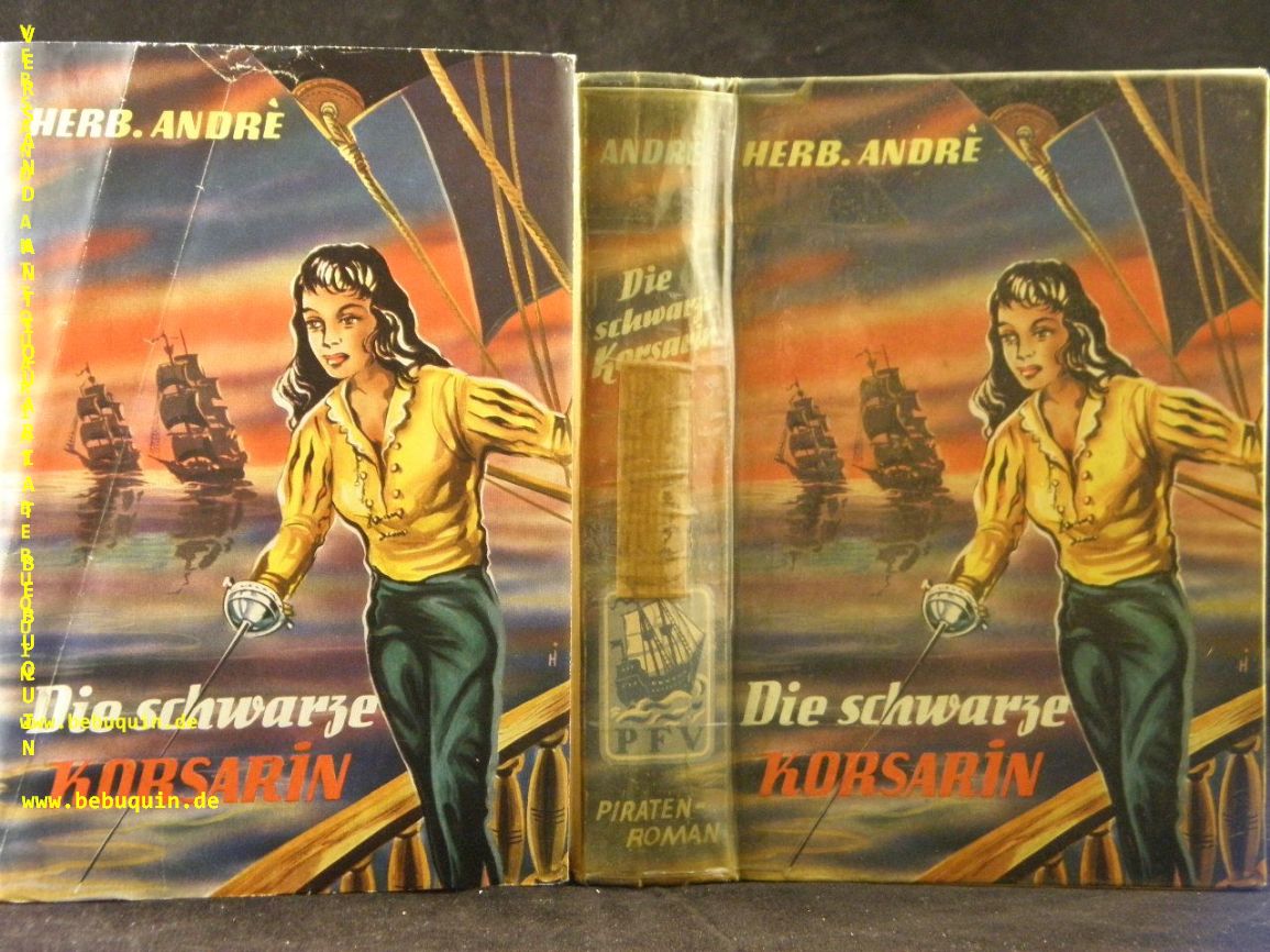 ANDRE, Herbert: Die schwarze Korsarin. Seeabenteuerroman. Marl-Hüls (Feldmann), ca 1950. 272 S. farb. ill. OPb. mit OUmschl. NaV, Umschlag leicht knitterspurig. 1. Aufl. dieser Ausgabe.