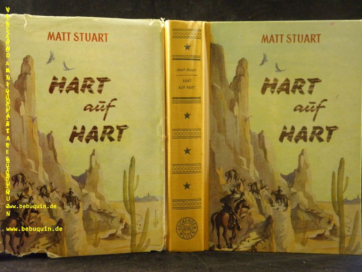 STUART, Matt: Hart auf Hart. München (AWA), ca 1955. 280 S. farb. ill. OHLn. mit OUmschl. Umschlag am Rand lädiert. = Lockender Westen. dt. EA mit dem seltenen Umschlag.