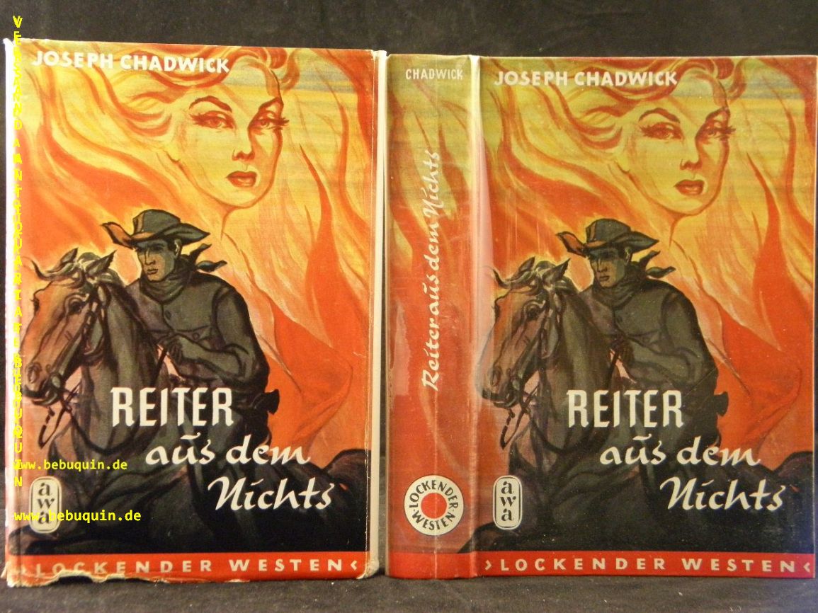 CHADWICK, Joseph: Reiter aus dem Nichts. D.v. Hansheinz Werner. München (AWA), ca 1955. 248 S. farb. ill. OPb. mit OUmschl. Umschlag am Rand gering lädiert, sonst schönes Ex. = Lockender Westen. dt. EA.