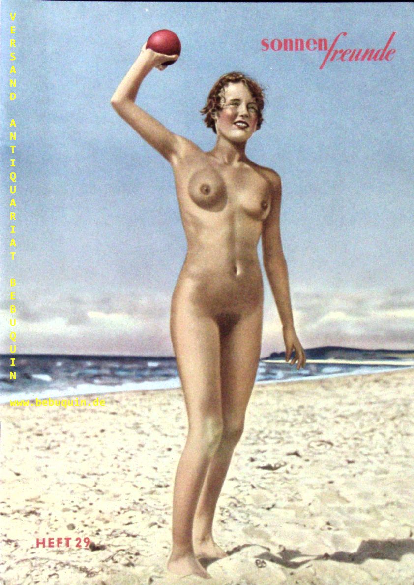 FKK.– SONNENFREUNDE.– Heft 029. Offizielles Organ des deutschen Bundes für Freikörperkultur. Hamburg (Danehl), 1951. Gr. 8°. 40 S. mit zahlr. Bildern. farb. ill. OBr. gutes Ex. enthält Artikel von Therese Mühlhause-Vogeler.