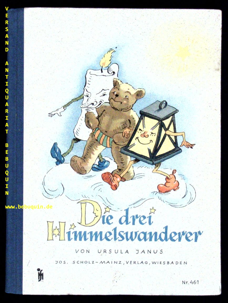 JANUS, Ursula: Die drei Himmelswanderer. Wiesbaden (Jos. Scholz-Mainz), 1949. 8°. 24 S. mit 12 farb. Bildtafeln. farb. ill.OHLn. Einband leicht bestaubt, sonst gut erhalten. EA Mück 1026.