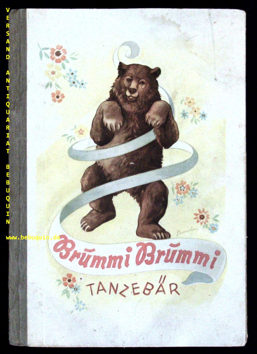 HAUENSTEIN, Arthur: Brummi-Brummi Tanzebär. Eine lustige Vagabundengeschichte. Altenburg (Hauenstein), 1947. Gr. 8. 20 S. mit farb. Bildern von Paul Bornschein. farb. ill. OHLn. leicht angeschmutzt. EA Mück 762.