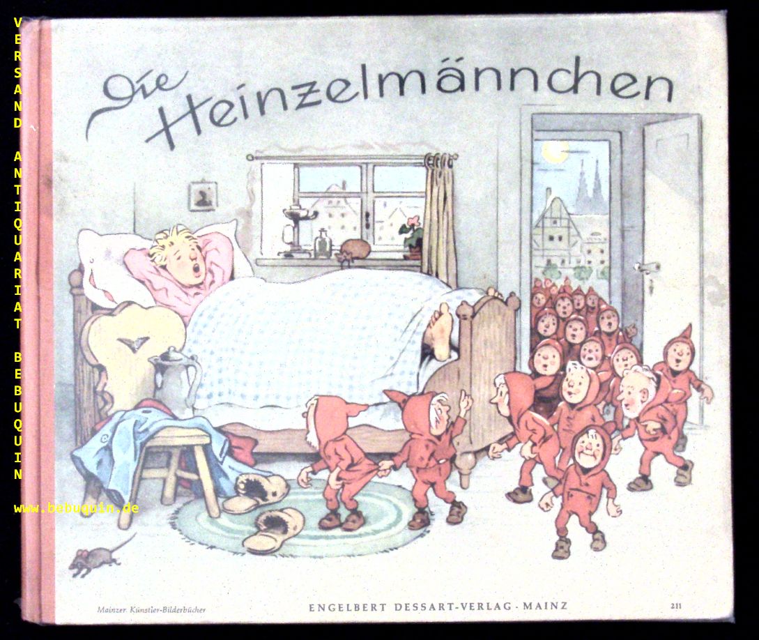 BAUMGARTEN.– KOPISCH, August: Die Heinzelmännchen. Mainz (Dessart), (1956). Quer 4°. 8 Bl. mit 8 farb. Bildtafeln und zahlr. Textabb. von Fritz Baumgarten. farb. ill. OHLn. Blattrand minimal angeschmutzt. = Mainzer Künstler-Bilderbücher 211. EA. Blaume 253.