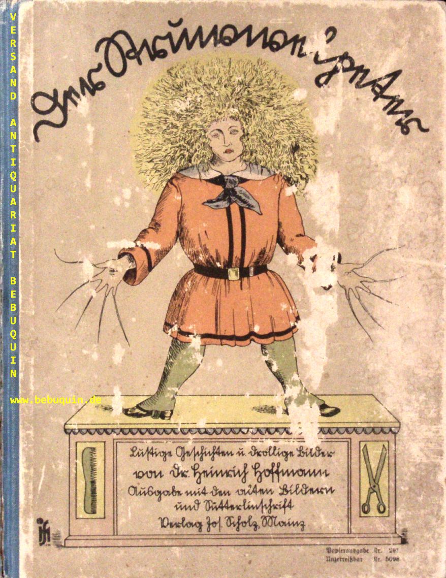 STRUWWELPETER.– HOFFMANN, Heinrich: Der Struwwelpeter. Lustige Geschichten und drollige Bilder. Ausgabe mit den alten Bildern und Sütterlinschrift. Mainz (Scholz), (1940). 4°., 24 S. mit farb. Illustr. des Autors. farb. ill. OHLn. Einband etwas berieben, Stempel auf Innendeckel, sonst feines Ex. Unzerreißbare Ausgabe Nr. 5098. Rühle 41a.