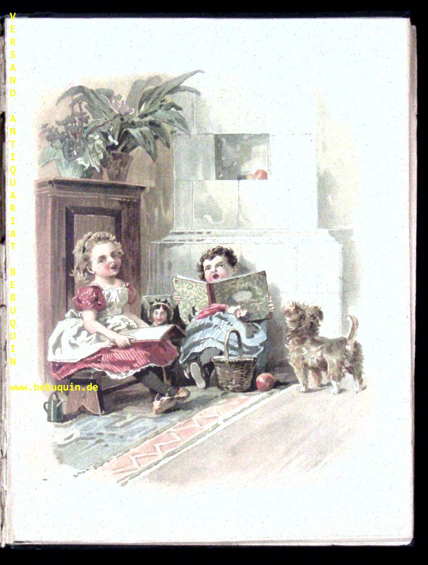 WOLFF, Anna: Gute Freundschaft. Eine Geschichte für Damen, aber für kleine. Stuttgart (Loewe), 1901. 37 (3) S. mit zahlr. Abb. + 7 chromolithogr. Bildtafeln von Oscar Pletsch. farb. ill. OHLn. fliegender Vorsatz fehlt, vereinzelt leicht fleckig und wasserwellig, insgesamt gut erhalten. 1. Auflage dieser seltenen Ausgabe mit 7 (!) Farbdrucken. Ries 2.