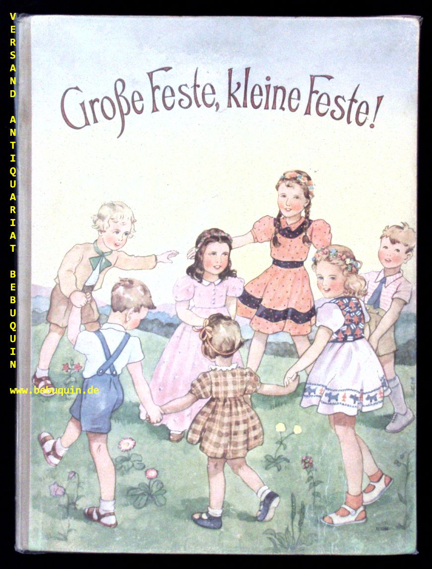 BEINTKER, Käte: Große Feste – kleine Feste. Unseren Lieblingen zur Freude. o.O. (o.Vlg.), ca 1945. Gr. 8°. 8 Bl. mit 8 farb. und 8 s/w Bildtafeln von Lotte Oldenburg-Wittig. farb. ill. OHLn. feines Ex. seltene EA. Klotz 356/3.