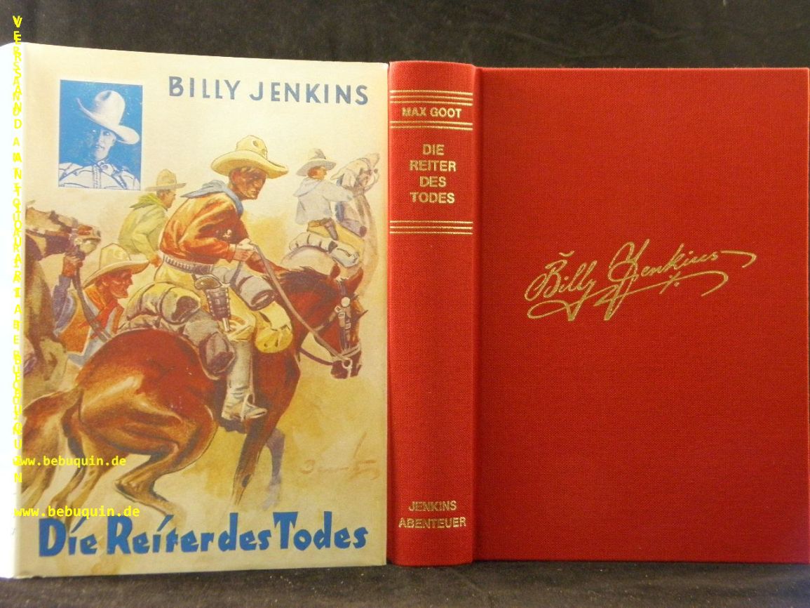 BILLY JENKINS.– GOOT, Max: Die Reiter des Todes. Reprint derAusgabe: Leipzig (Dietsch), 1935. 287 S. rotes OLn mit goldgeprägter Signatur und OUmschl. neuwertig. = Bücher der Spannung, Nr. 9. sehr seltener Reprint des im Original unauffindbaren Titels.